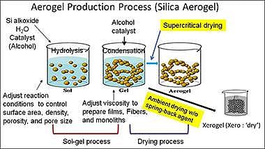 இந்தக் கூழ்மத்தை உருவாக்க, பெரும்பாலும் சிலிக்காவையே பயன்படுத்தினர். சிலிக்கா கூழ்மத்தில், இன்னொரு கரைப்பான் மூலம் நீரை விலக்கி, பின்னர் அந்தக் கரைப்பானுக்குப் பதில் திரவக் கரியமில வாயுவை நிரப்பி, அதை supercritical drying மூலம் விட்டு நீக்குவார்கள். விளைவு, 98 சதவீதம் காற்றால் ஆன, ஆனால் திடமான வடிவமுடைய ஏரோஜெல் கிடைக்கும்.