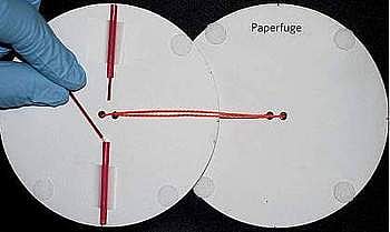 நீரிழிவு நோய்க்கு ரத்தச் சர்க்கரை அளவைப் பரிசோதிக்க விரல்முனையில் ரத்தம் எடுப்பதுபோல் எடுத்து, அந்த U வடிவக் குழாயில் வைத்து அந்த பேப்பர்ஃப்யூஜை, சுத்து மிட்டாய் சுற்றுவதுபோல் சுற்றினால், ஒன்றரை நிமிடத்தில் ரத்தத்தை, அதன் கூறுகளின் எடைவாரியாகப் பிரித்துவிடுகிறது. அதன்பின், நுண்ணோக்கியின் கீழ் வைத்து அந்த ரத்தத்தைச் சோதித்தால், மலேரியா இருக்கிறதா இல்லையா என்று தெரிந்துவிடும். (frugal science என்ற பெயரில் காகிதத்தால் வடிவமைக்கப்பட்ட ஒரு நுண்ணோக்கியை மனு ப்ரகஷே வடிவமைத்திருக்கிறார் என்பது உபரித் தகவல்).