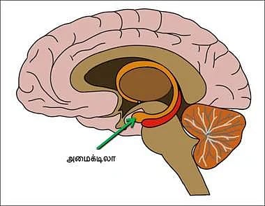 மூளையின் நான்கு பகுதிகளில் இரு பகுதிகள் பெருமூளை மற்றும் லிம்பிக் அமைப்பு. லிம்பிக் அமைப்பின் ஓருறுப்பு அமைக்டிலா என்பது பல்லாயிரக்கணக்கான ஆண்டுகளுக்கு முன்பே பரிணாமத்தில் வளர்ந்த ஒன்று. இது உணர்ச்சிவயமான ஆளுமையின் இடம். தன்இயக்கம், புறவயத் தூண்டுதலுக்கான உடலின் எதிர்வினை என்பனவற்றை அமைக்டிலா கவனித்துக்கொள்கிறது. திடீரென பலத்த ஒலி கேட்டால் நாம் பதறுகிறோம். உடலின் இந்த எதிர்வினையை அமைக்டிலா தூண்டுகிறது. பலத்த ஒலி, திடீர் நிகழ்வுகள், இதயத் துடிப்பை அதிகமாக்கி, ரத்தத்தை அதிக அழுத்தத்தில் உடலெங்கும் செலுத்தி, பரபரப்பூட்டும் அட்ரினலின் போன்ற ஹார்மோன்களை சுரக்கவைத்து… கிட்டத்தட்ட, கற்கால மனிதன், சிங்கத்தைப் பார்த்தால் ஓட முயற்சிக்கும் இயக்கத்துக்கு நம்மைத் தயாராக்குகிறது. இதன் வேலை இன்றும் தொடர்கிறது. என்ன, இப்போது சிங்கம் வரத் தேவையில்லை, ஹலோ என்றாலே அரைமணி நேரம் அறுக்கும் எதிர்வீட்டு ரிடையர்டு சதாசிவம் வந்தால் போதும்.
