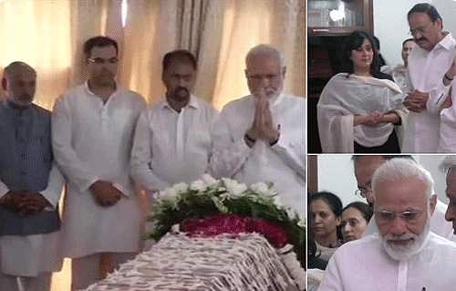 புதுதில்லி: மறைந்த சுஷ்மா ஸ்வராஜின் உடலுக்கு தலைவர்கள் நேரில் அஞ்சலி செலுத்தினர்.