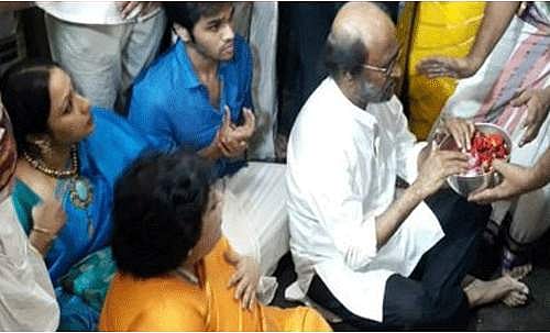 Rajnikanth offered prayers at the Sri Devarajaswami temple, early morning today, in Kanchipuram as the idol of Lord Athi Varadar is turned to standing position. The idol is taken out once in 40 years from the temple pond.