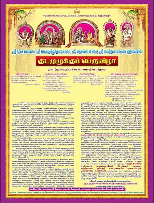வருகின்ற ஆனி மாதம் 23 8.7.2019 ஆம் தேதி திங்கள்கிழமை காலை 9.30க்குள் குடமுழுக்கு நடைபெற உள்ளது.