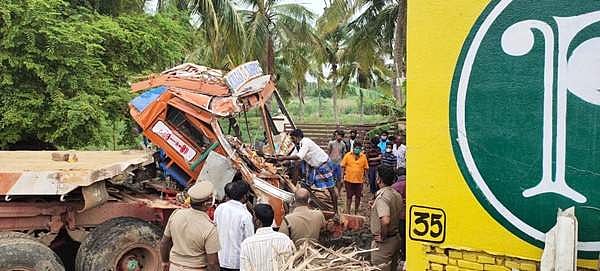 ஆம்பூர் அருகே வீட்டிற்குள் புகுந்த லாரி: ஓட்டுநர் சாவு - 4 பேர் காயம்