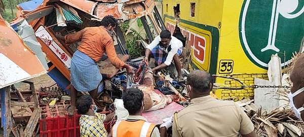 அதில் டிரைவர் துரைராஜ் இறந்தார். மாற்று ஓட்டுநர் வெங்கடேசன் (45), வீட்டில் இருந்த அஸ்மிதா (13), யுகேஷ் (12), சஞ்சய் (6) ஆகியோர் காயமடைந்தனர்.