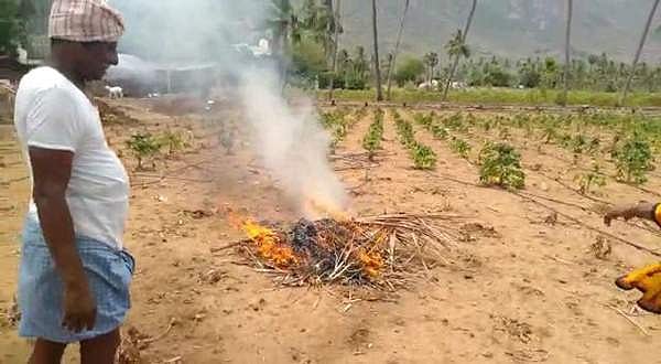 மரவள்ளிப் பயிர்களை தீயிட்டு அழிக்கும் விவசாயிகள்!