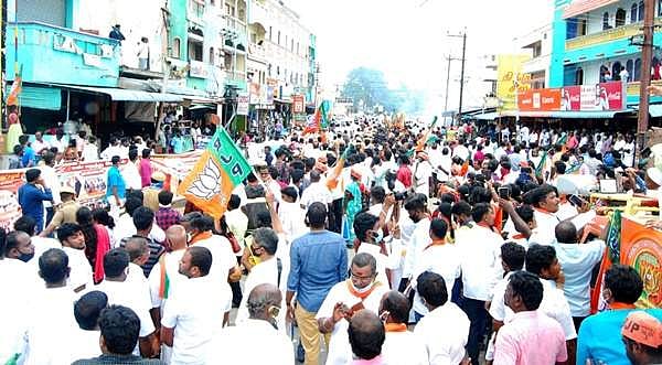 வேல் யாத்திரைக்கு வந்த பாஜகவினர்.