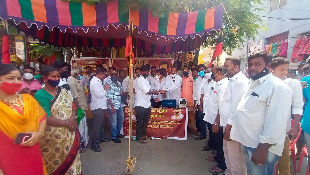 திமுகவின் இணையவழி உறுப்பினர் சேர்க்கை 10 லட்சத்தை நெருங்குகிறது. அதன் ஒரு பகுதியாக சென்னை தெற்கு திமுக சார்பில் உறுப்பினர் சேர்க்கை நடைபெற்றது.