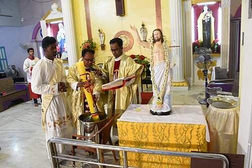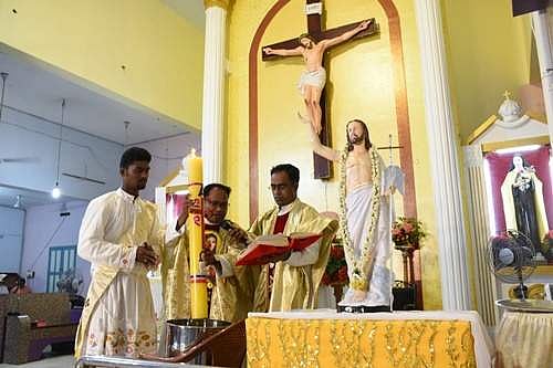 இந்நிலையில், திருச்சி கிராப்பட்டி புனித குழந்தை தெரசா ஆலயத்தில் மக்கள் யாரும் இன்றி பங்குத்தந்தை ஜோ.ஜோ லாரன்ஸ் தலைமையில் ஈஸ்டர் பெருவிழா நிகழ்வுகள் நடந்தது அருகில் அருட்தந்தை அன்பு அடிகளார்.