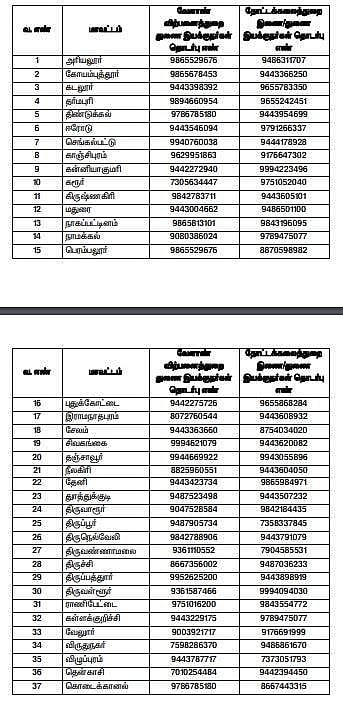 மாவட்டங்களில் இயங்கி வரும் கட்டுப்பாட்டு அறை எண்கள்: