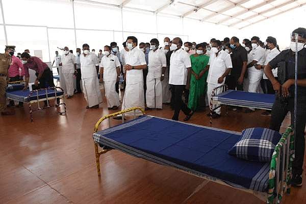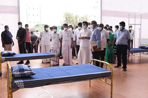 சேலம் இரும்பாலை வளாகத்தில் ஆக்சிஜன் வசதியுடன் கூடிய 500 படுக்கைகளுடன் கூடிய கரோனா சிகிச்சை மையத்தை திறந்து வைத்து பார்வையிட்ட முதல்வர் மு.க. ஸ்டாலின்.