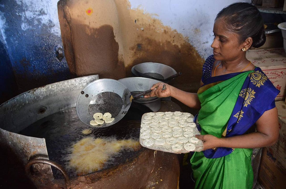திருநெல்வேலியில் தீபாவளி பலகாரங்கள் தயாரிக்கும் பெண்கள்