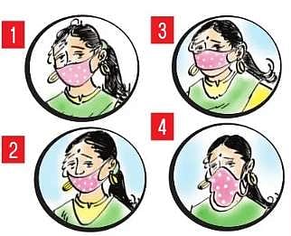 முகக் கவசத்தின் மேற்பகுதி மூக்கை முழுமையாக மறைக்கும் விதமாக உயா்த்தி அணிய வேண்டும். முகக் கவசத்தின் கீழ்ப்பகுதி முழுமையாக இறக்கி தாடையை முற்றிலும் மறைக்கும் விதத்தில் இருக்க வேண்டும். எப்போதும் முகத்தை ஒட்டி இறுக்கமாக அணிய வேண்டும். இடைவெளியுடன் அணியக் கூடாது.