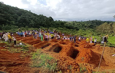 வரலாறு காணாத வயநாடு நிலச்சரிவில் சிக்கி இறந்தவர்களை ஒரே இடத்தில் அடக்கம் செய்வதற்காக உருவாக்கப்பட்டு வரும் சுடுகாடு.