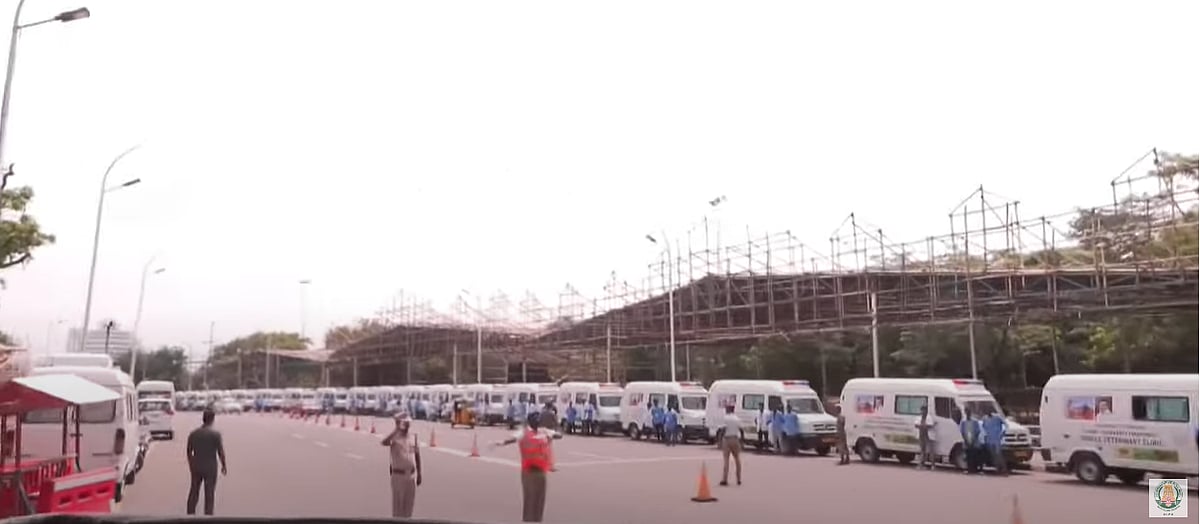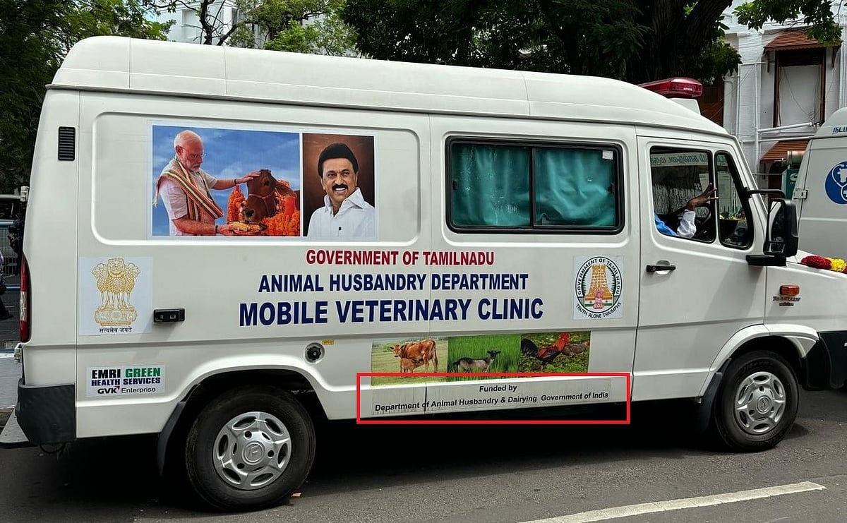 தமிழ்நாடு அரசின் கால்நடை பராமரிப்பு வேன்களில் முதல்வர் ஸ்டாலினுடன் பிரதமர் மோடி படம்!