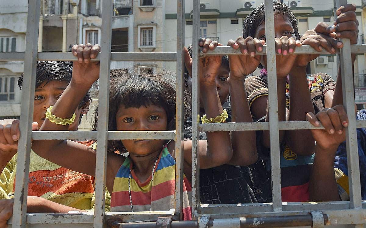 சென்னையில் உணவுக்காகக் காத்திருக்கும் வீடற்றோர்