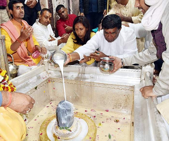 வாராணசியிலுள்ள காசி விசுவநாதர் ஆலயத்தில் வெள்ளிக்கிழமை சிவலிங்கத்தை பூஜித்து வழிபட்ட மொரிஷீயஸ் அதிபர் பிருத்விராஜ்சிங் ரூபன்.