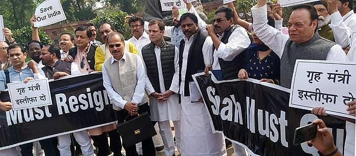 புது தில்லியில் நாடாளுமன்ற பட்ஜெட் கூட்டத் தொடர் நடந்துகொண்டிருக்கும் நிலையில், திங்கள்கிழமை, புது தில்லி வன்முறைக்கு எதிர்ப்புத் தெரிவித்துப் போராட்டம் நடத்தில் காங்கிரஸ் தலைவர் ராகுல் காந்தி மற்றும் காங்கிரஸ் தலைவர்கள்.