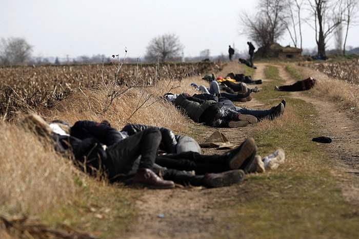 துருக்கி - கிரேக்க எல்லையில் பஜார்கூல் எல்லைப் பகுதியில் கிரேக்கத்தில் நுழைவதற்காகக் காத்திருக்கும் பயணிகள். ஐரோப்பாவுக்குச் செல்ல விரும்புவோருக்குத் தங்கள் கதவுகள் திறந்தே இருக்கின்றன என்று துருக்கி அறிவித்துவிட்ட நிலையில் கிரேக்கத்தில் நுழைவதற்காக எல்லைகளில் ஏராளமான அகதிகள் குவிந்திருக்கின்றனர்.