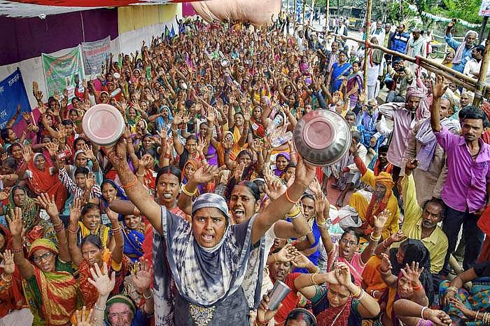 பிகாரில் பாட்னா நகரில் பல்வேறு கோரிக்கைகளை வலியுறுத்தி ஆர்ப்பாட்டம் நடத்திய பாட்னா மதிய உணவுத் தொழிலாளர்கள்.