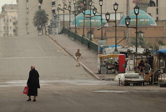 இராக்கில் தலைநகர் பாக்தாத்தில் ஆளில்லாமல் வெறிச்சோடிக் கிடக்கும் திக்ரிஸ் ஆற்றுப் பாலத்தைக் கடந்து செல்கிறார் ஒருவர். கரோனா வைரஸ் பரலவலைத் தடுக்க இராக் அரசு ஒரு வார கால ஊரடங்கை அறிவித்துள்ளது.