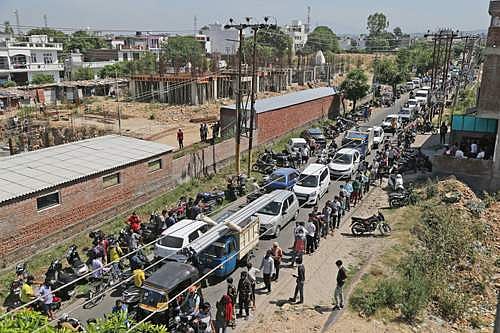 தமிழகம் அல்ல: ஜம்மு - காஷ்மீரில் மதுக் கடைகள் திறக்கப்பட்டதைத் தொடர்ந்து, வியாழக்கிழமை, மதுபானங்களை வாங்குவதற்காக வரிசைகளில் நிற்கும் குடிப்பழக்கத்தினர்.