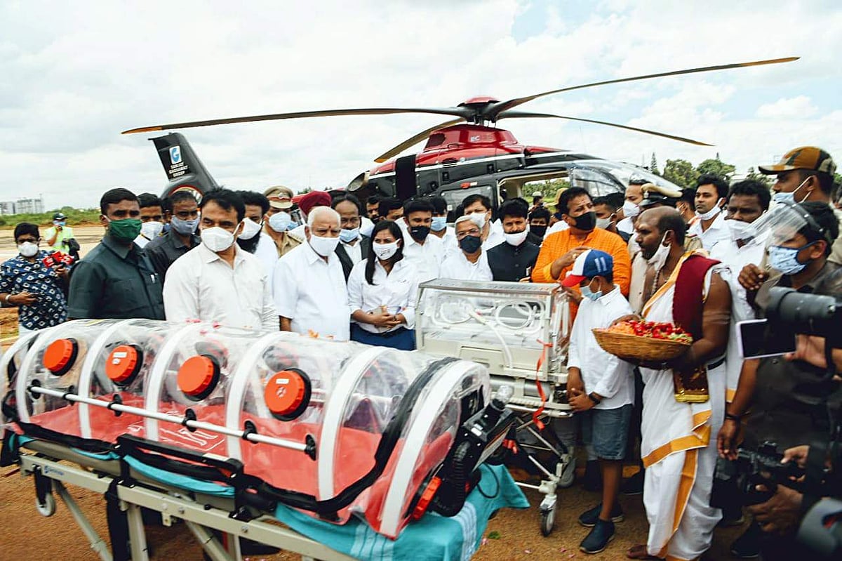 கர்நாடக மாநிலத் தலைநகர் பெங்களூருவில் ஒருங்கிணைந்த ஹெலிகாப்டர் ஆம்புலன்ஸ் சேவையை செவ்வாய்க்கிழமை தொடக்கிவைத்தார் முதல்வர் பி.எஸ். எடியூரப்பா.