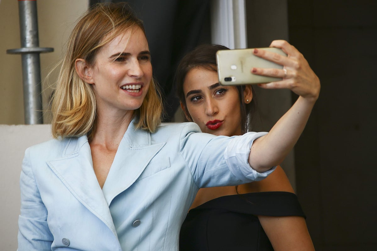 இத்தாலியில் வெனிஸ் நகரில் செவ்வாய்க்கிழமை வெனிஸ் திரைப்பட விழாவின்போது லைலா இன் ஹைஃபா படத்துக்காகத் தற்படம் எடுத்துக்கொண்ட நடிகைகள் நாமா ப்ரீஸ் (இடது), பாகிரா அப்லாஸி.