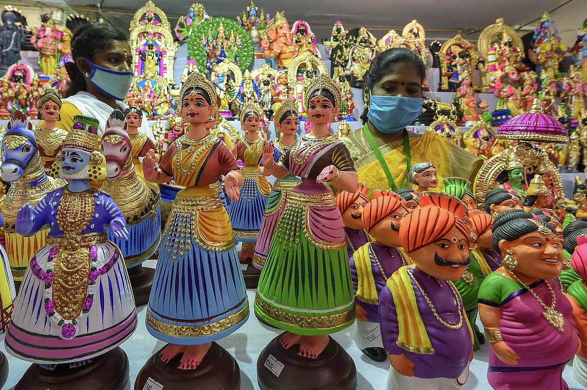 சென்னையில் காதி கிராப்ட் வளாகத்தில் காட்சிக்கு வைக்கப்பட்டுள்ள கொலு பொம்மைகள். கரோனா பிரச்சினை காரணமாக வந்துசேராததால் வெளி மாநில பொம்மைகள் காட்சியில் இடம் பெறவில்லை.