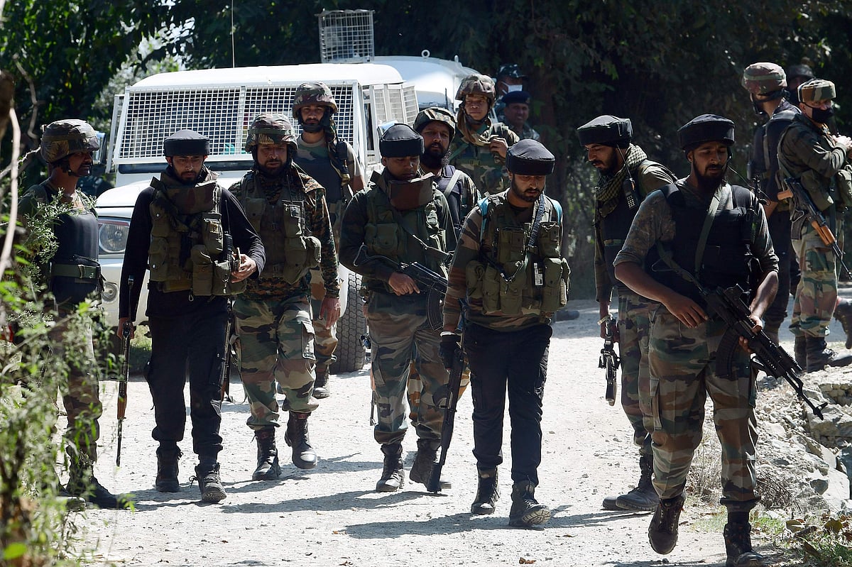 ஸ்ரீநகரில் தீவிரவாதிகளின் தாக்குதலில் மத்திய கூடுதல் காவல்படை அலுவலர் கொல்லப்பட்ட பத்காம் மாவட்டம் கெய்சர்முல்லா பகுதிக்கு வந்த ராணுவ வீரர்கள்.