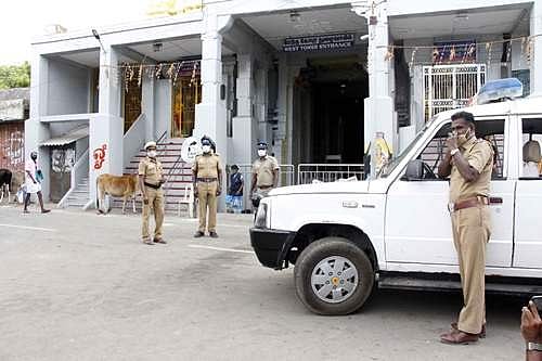 கரோனா நோய் பரவல் தடுப்பு நடவடிக்கையாக ஆடி அமாவாசை நாளில் ராமேசுவரத்திற்கு பக்தர்கள் வர தடையால் ஞாயிற்றுக்கிழமை ராமேசுவரம் வெறிச்சொடி கானப்பட்டது.