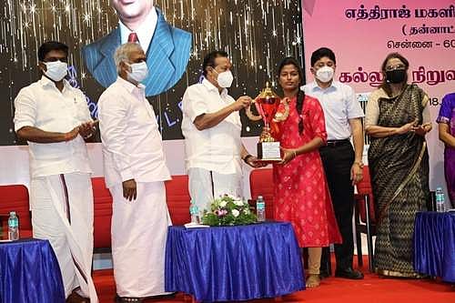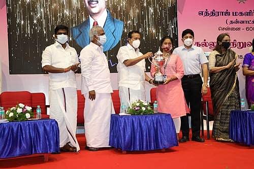 பின்னர் கல்லூரியின் ஆண்டு மலரை அமைச்சர் பொன்முடி வெளியிட மத்திய சென்னை நாடாளுமன்ற உறுப்பினர் தயாநிதி மாறன் பெற்றுக்கொண்டார். விழாவின் முடிவில் கல்லூரி மாணவிகளுக்கு கொரோனா நிவாரண பொருட்கள் மற்றும் நலத்திட்ட உதவிகளை அமைச்சர்கள் க.பொன்முடி, சேகர்பாபு ஆகியோர் வழங்கினர்.