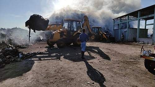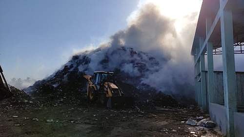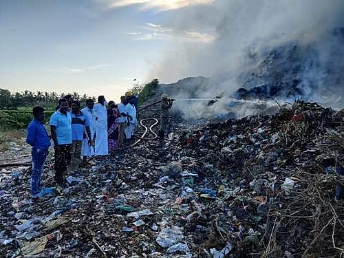 சீர்காழி நகராட்சி குப்பை கிடங்கில் தீ: தீயை அணைக்க தீயணைப்பு வீரர்கள் 5 மணி நேரத்திற்கு மேலாக போராட்டம்