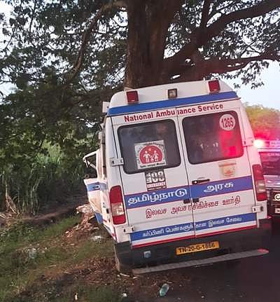 கள்ளக்குறிச்சி அருகே அவசர ஊர்தி டயர் வெடித்து விபத்து: கர்ப்பிணி பெண் உள்ளிட்ட 3 பேர் பலி