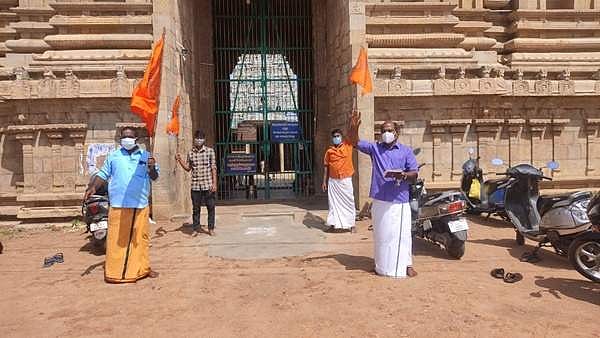 மன்னார்குடி பகுதியில் கோவில்களை திறக்கக் கோரி இந்து முன்னணியினர் கோவில்கள் முன்பு சூடம் ஏற்றி ஆர்ப்பாட்டத்தில் ஈடுபட்டனர்.