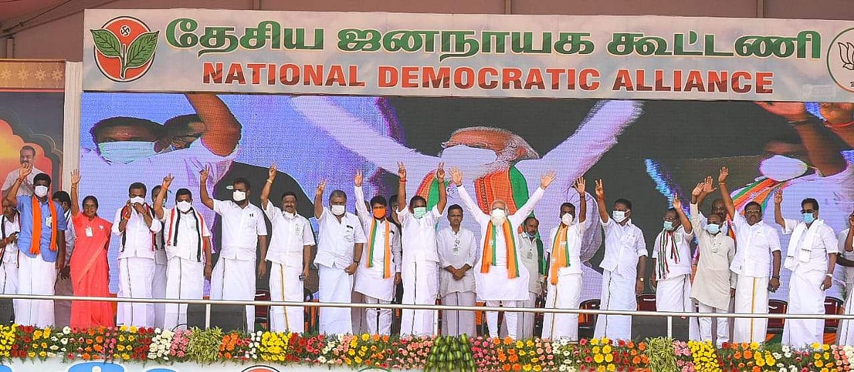 ஐ.நா.சபையில் உரையாற்றும்போது ஒரு சில தமிழ் வார்த்தைகளைக் கூறியதை நான் நினைவுகொள்கிறேன். தேசிய ஜனநாயகக் கூட்டணியின் இந்தக் குடும்பம் உங்களுடைய ஆசியை வேண்டி நிற்கிறது. தமிழக மக்களுக்கு சேவை செய்வதற்காக. நாங்கள் ஒருங்கிணைந்த வளர்ச்சித்திட்டத்தை அடிப்படையாகவைத்து வாக்குகளைக் கேட்கிறோம்.