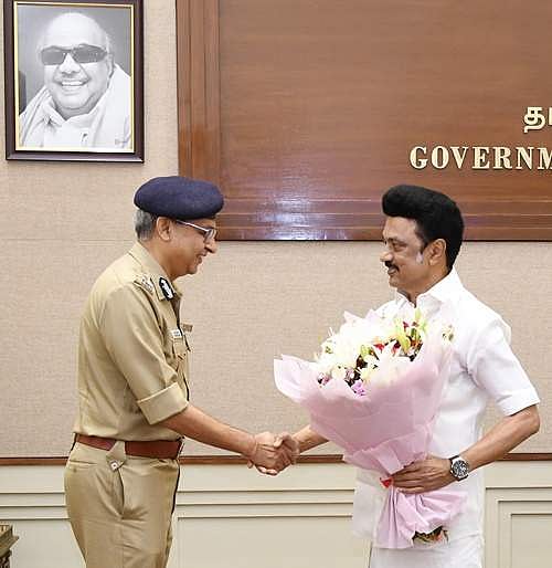 காவல்துறை தலைமை இயக்குநராக நியமிக்கப்பட்டுள்ள சங்கர் ஜிவால் தலைமைச் செயலகத்தில் முதல்வர் மு.க.ஸ்டாலினை சந்தித்து வாழ்த்துப் பெற்றார்.