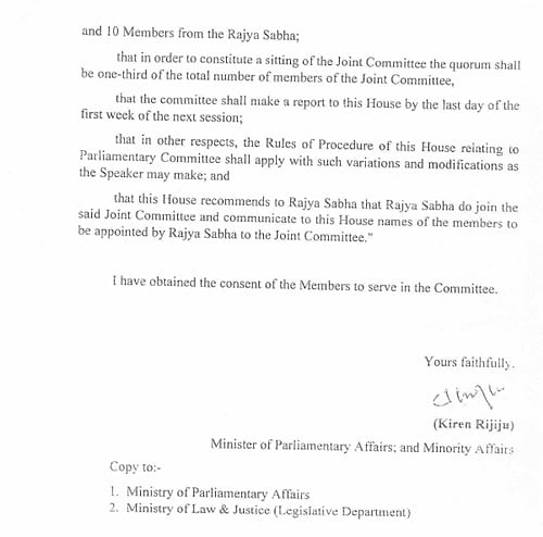 31 பேர் கொண்ட கூட்டுக்குழுவை அமைத்து மத்திய அமைச்சா் கிரண் ரிஜிஜு உத்தரவு.