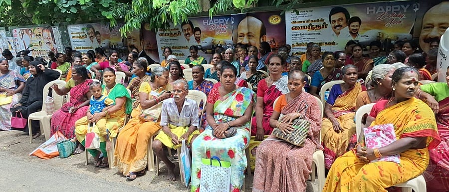 காத்திருப்பு போராட்டத்தில் பங்கேற்றுள்ள ஆக்கிரமிப்பு வீடுகள் அகற்றப்பட்ட உரிமையாளர்கள்.