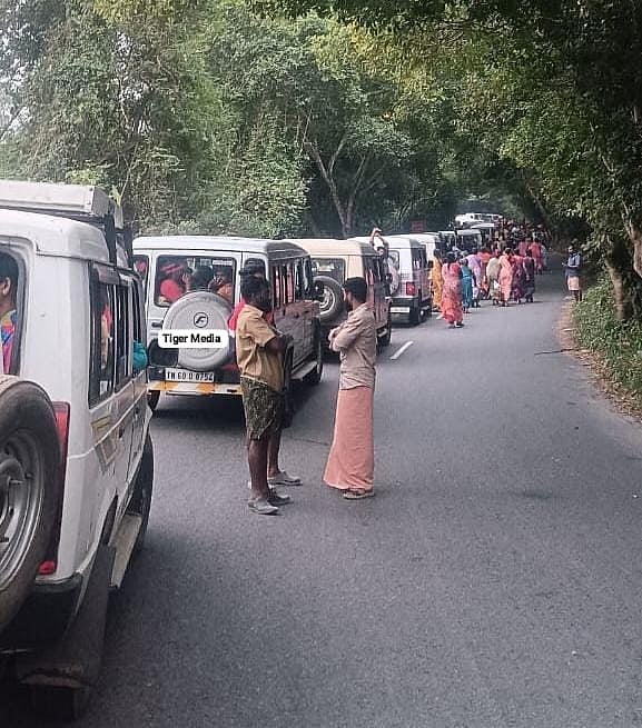 விபத்து காரணமாக போக்குவரத்து தடை ஏற்பட்டதால் தமிழகத்திலிருந்து ஏலக்காய் வேலைக்கு கேரளத்துக்கு செல்லும் தொழிலாளர்கள் வாகனங்கள் கம்பம் மெட்டு மலைச்சலையில் நீண்ட வரிசையில் காத்திருக்கின்றனர்.