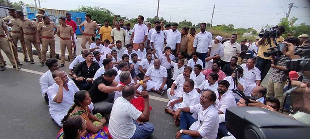 கப்பலூர் சுங்கச்சாவடியை இடமாற்றம் செய்யக்கோரி நடைபெற்ற போராட்டத்தில், சுங்கச்சாவடியை முற்றுகையிட சென்ற முன்னாள் அமைச்சர் ஆர்.பி. உதயகுமார் உள்ளிட்ட 1000-க்கும் மேற்பட்டோர் கைது செய்யப்பட்டுள்ளனர்.