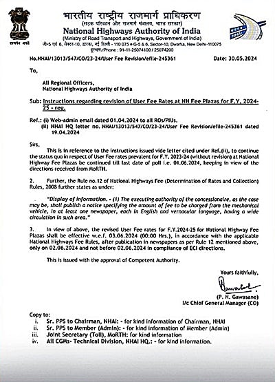 இந்த நிலையில், நாடு முழுவதும் சனிக்கிழமை(ஜூன் 1) மக்களவைக்கான இறுதிக்கட்ட தேர்தல் முடிவடைந்ததையடுத்து, திங்கள்கிழமை(ஜூன் 3) அதிகாலை 12 மணி முதல் சுங்கச்சாவடி கட்டணம் மாற்றம் அமலுக்கு வருகிறது.