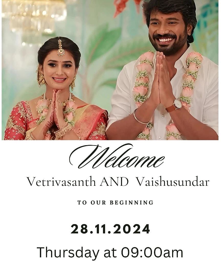 இந்த நிலையில், வெற்றி வசந்த் - வைஷ்ணவிக்கு வரும் 28 ஆம் தேதி காலை 9 மணிக்கு திருமணம் நடைபெறவுள்ளதாகத் தகவல் தெரியவந்துள்ளது.