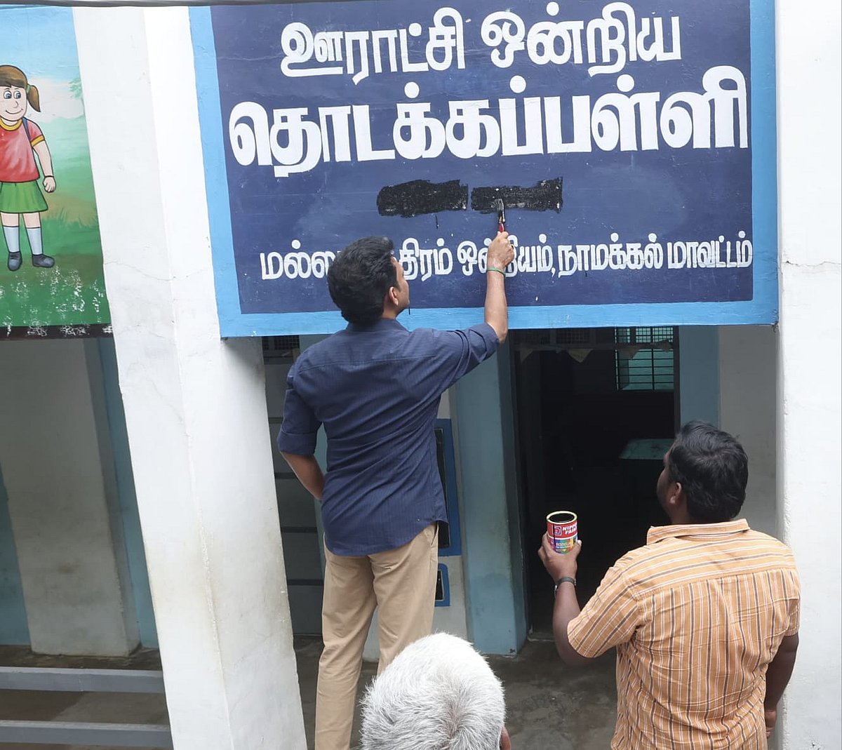 நாமக்கல் மாவட்டத்தில் மல்லசமுத்திரத்தில் உள்ள அரசுப் பள்ளியின் 'அரிசன் காலனி' என்ற பெயரை கருப்பு மையால் அழித்து, மல்லசமுத்திரம் கிழக்கு எனப் பெயர் மாற்றம் செய்துள்ளார் பள்ளிக் கல்வித்துறை அமைச்சர் அன்பில் மகேஷ்.