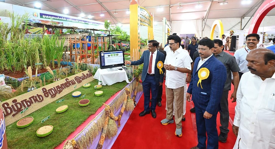 இந்த வேளாண் கண்காட்சியையும், கருத்தரங்கையும் தொடங்கி வைப்பதில், நான் உள்ளபடியே பெருமைப்படுகிறேன்! விவசாயத்திற்கும், விவசாயிகளுக்கும் முன்னுரிமை அளித்து செயல்படுவதில், நம்முடைய திராவிட மாடல் அரசு முன்னோடியாக இருக்கிறது. இந்த வேளாண் கண்காட்சி, இந்த ஒரு ஆண்டில் மட்டும் எத்தனையாவது கண்காட்சியை நடத்திக் கொண்டிருக்கிறோம் தெரியுமா? மூன்றாவது கண்காட்சி! முதலில், ஜூன் மாதம், ஈரோடு மாவட்டம் பெருந்துறையில் நடத்தினோம். இரண்டாவதாக, செப்டம்பர் மாதம், சென்னை வர்த்தக