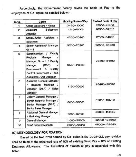 தமிழக கைத்தறித்துறையின் கீழ் செயல்பட்டு வரும் கோ-ஆப்டெக்ஸ் நிறுவனத்தின் ஊழியர்களுக்கு ஊதிய உயர்வு அறிவிக்கப்பட்டுள்ளது.