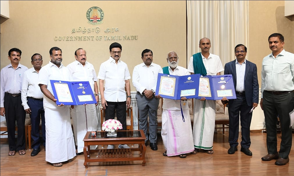 உயிர்ம வேளாண்மையில் சிறந்து விளங்கிய மூன்று நபர்களுக்கு நம்மாழ்வார் விருது வழங்கி சிறப்பித்த முதல்வர் மு.க.ஸ்டாலின்