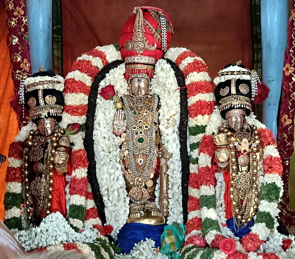 தங்க, வைர ஆபரணங்கள் மற்றும் பூக்களால் அலங்கரிக்கப்பட்ட உற்சவர் ஸ்ரீ வைத்திய வீரராகவ பெருமாள் சமேதராய் ஸ்ரீதேவி, பூதேவியுடன் எழுந்தருளினார்.