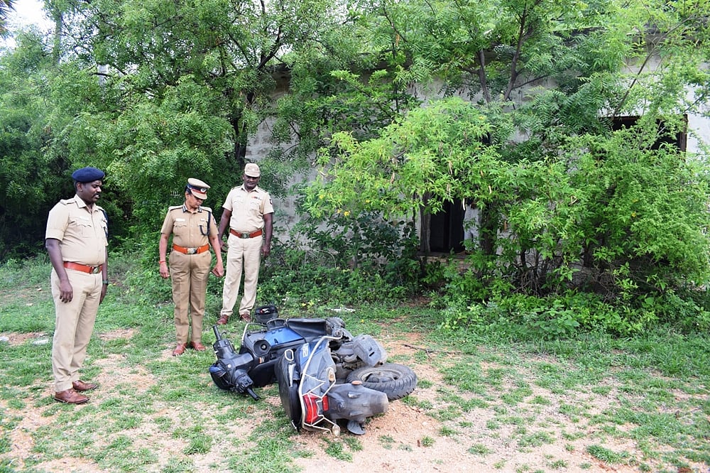 சங்ககிரியில் தேடப்பட்டுவந்த குற்றவாளி பதுங்கியிருந்த அறையையும், குற்றவாளி பயன்படுத்திய இருசக்கரவாகனத்தையும் சனிக்கிழமை பார்வையிடும் சேலம் சரக காவல்துறை துணைத்தலைவர் இ.எஸ்.உமா. உடன் நாமக்கல் மாவட்ட காவல் கண்காணிப்பாளர் எஸ்.ராஜேஸ்கண்ணன்.