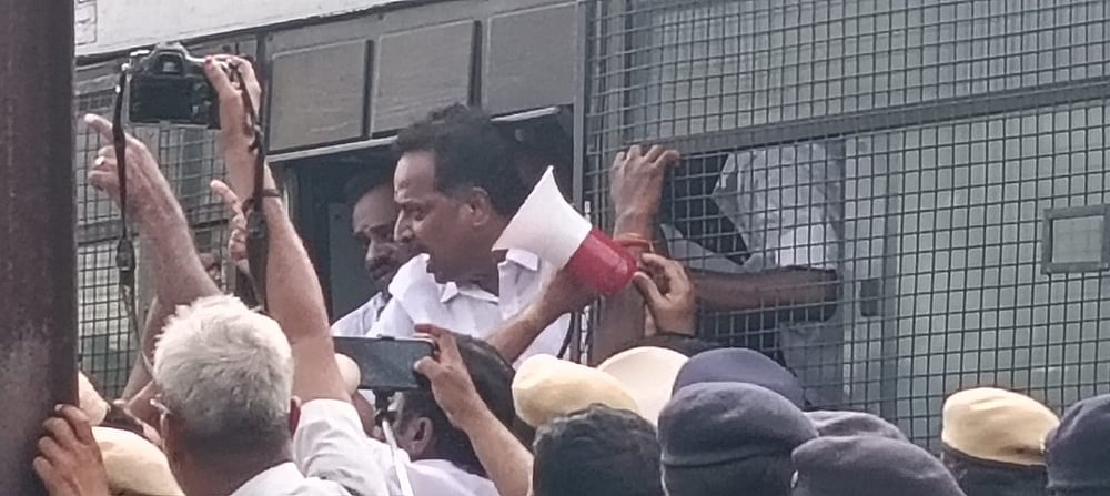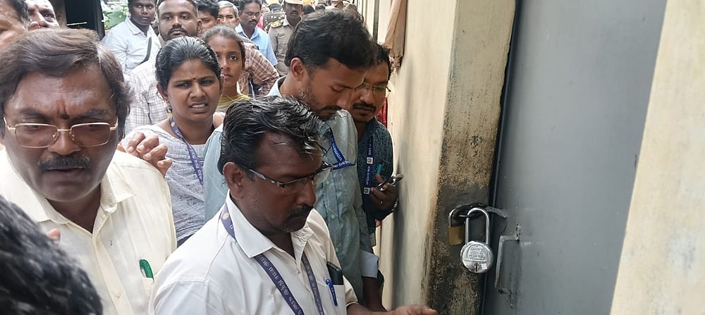 கண்ணம்மாள் வீட்டுக்கு சீல் வைக்க முடியாமல் அதிகாரிகளை தடுத்து நிறுத்தி போராட்டத்தில் ஈடுபட்டு வரும் அனைத்து அரசியல் கட்சியினர்.