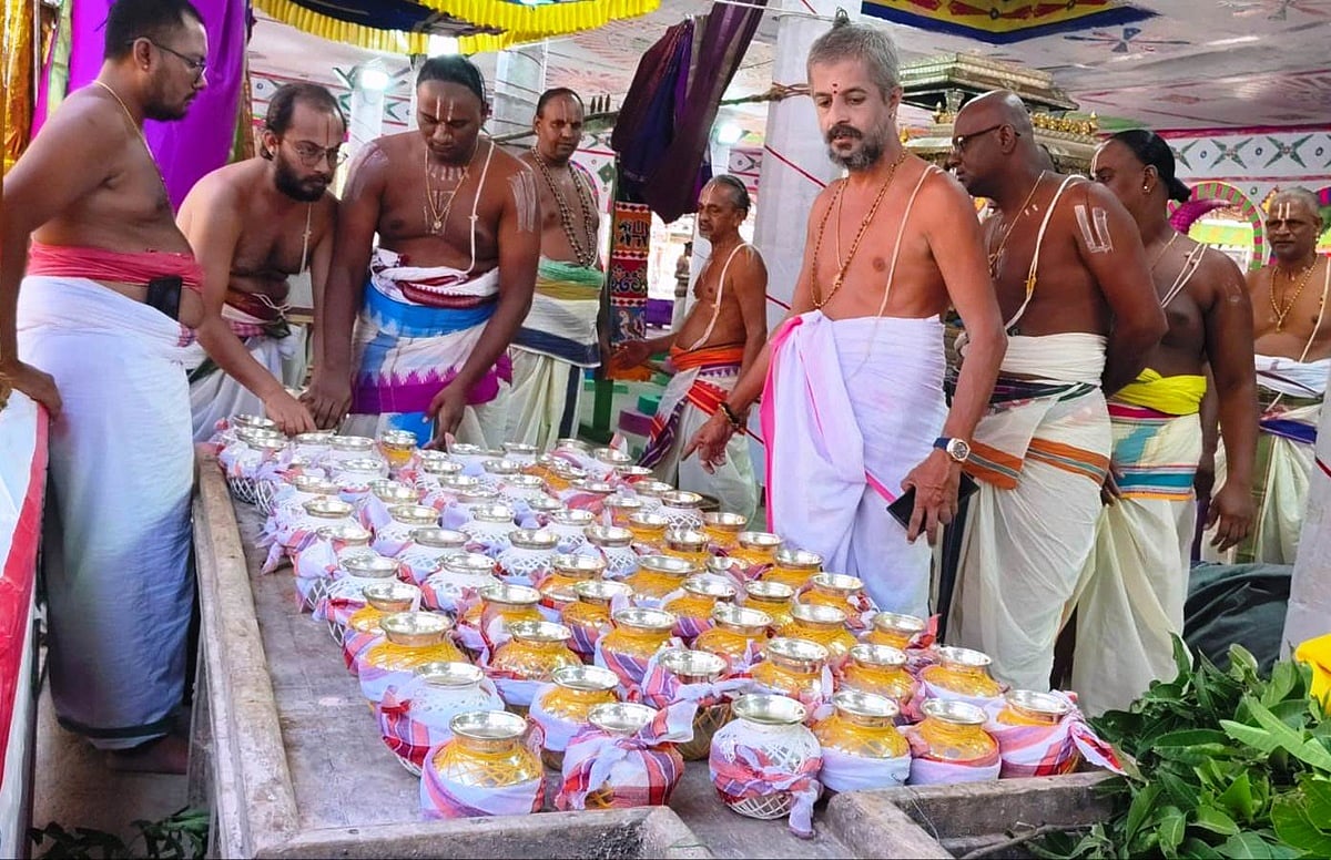 புதன்கிழமை யாகசாலை பூஜைகள் தொடங்கின. மேலும், கோயில் ராஜகோபுரம், கோவிந்தராஜ பெருமாள் கோயில் விமானம் மற்றும் புண்டரீகவள்ளி தாயாா், வேணுகோபாலா், நரசிம்மா், கருடா் சந்நிதிகளின் விமானங்களில் பூஜிக்கப்பட்ட 21 கலசங்கள் பொருத்தப்பட்டன.